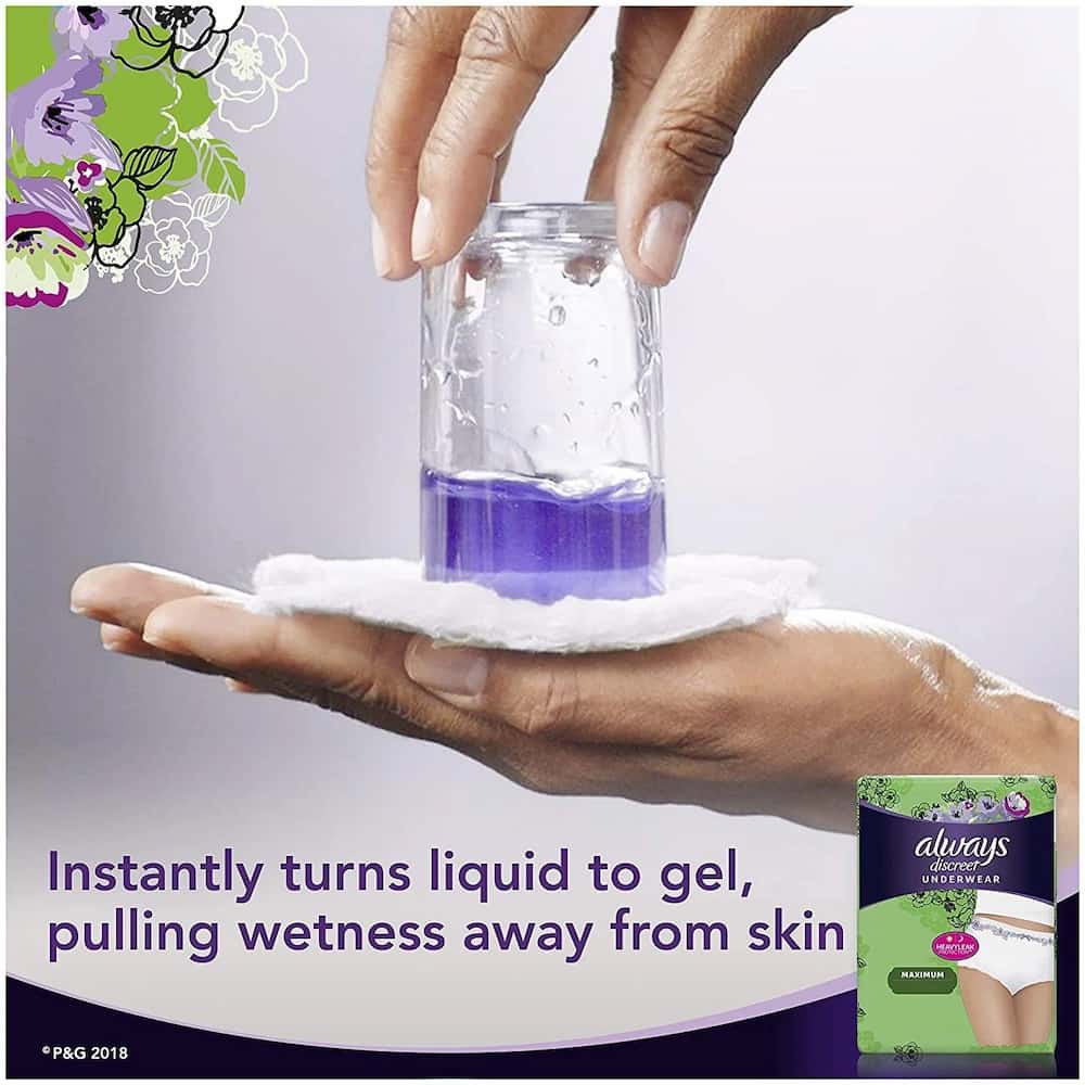 Provides up to 100% bladder leak protection with a discreet, comfortable fit. Designed with a super absorbent core that quickly locks away moisture and odors, keeping you feeling dry and confident all day. The soft, stretchy waistband offers a secure and comfortable fit for maximum protection.