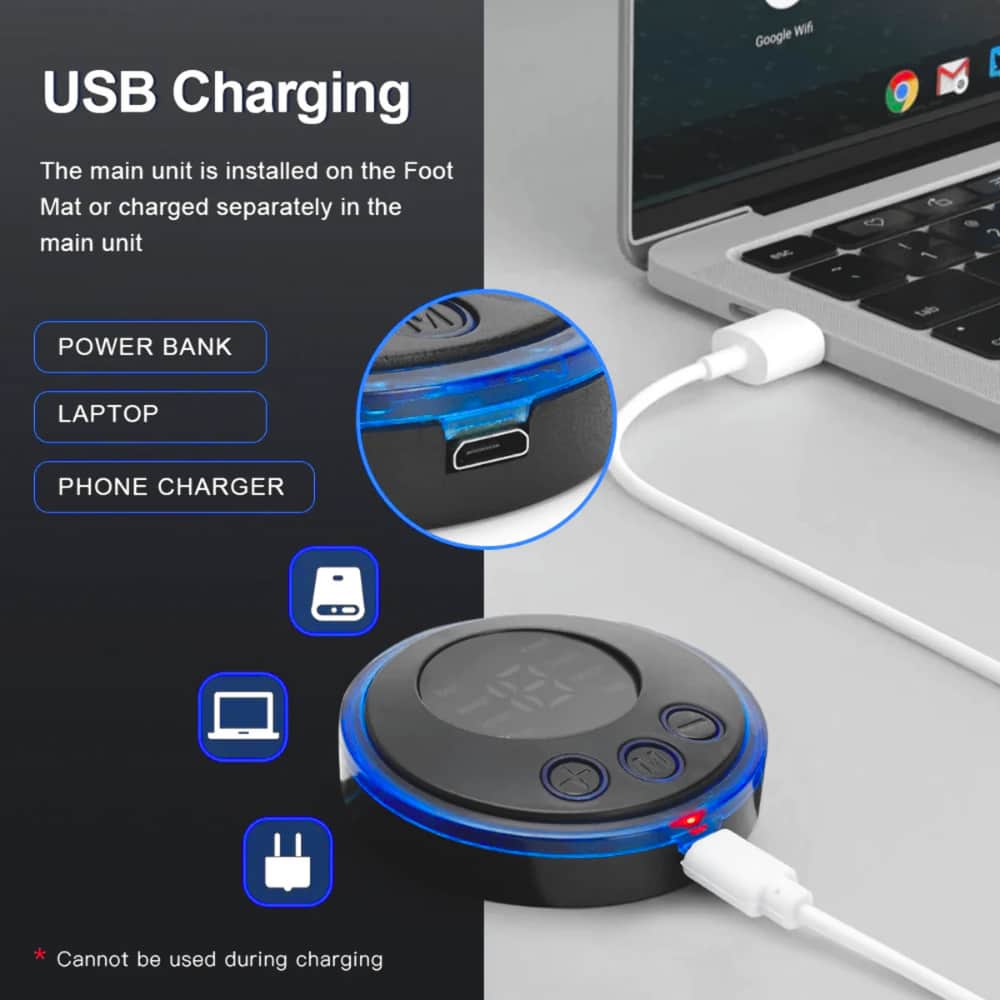The Electric EMS Foot Massager Pad is a device designed to provide electrical stimulation to the muscles of the feet and calves. It utilizes Electrical Muscle Stimulation (EMS) technology to send electrical impulses that cause muscle contractions, aiming to relax muscles and improve blood circulation.