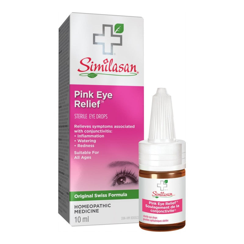 Similasan Pink Eye Relief Drops - 10ml offers a gentle, homeopathic formula crafted to temporarily soothe multiple mild eye irritation symptoms such as redness, burning, dryness, grittiness, and watery discharge using natural active ingredients like Belladonna 6X, Euphrasia officinalis (Eyebright) 6X, and Hepar sulphuris 12X, without harsh vasoconstrictors, and is designed for convenient external use in a compact dropper bottle.