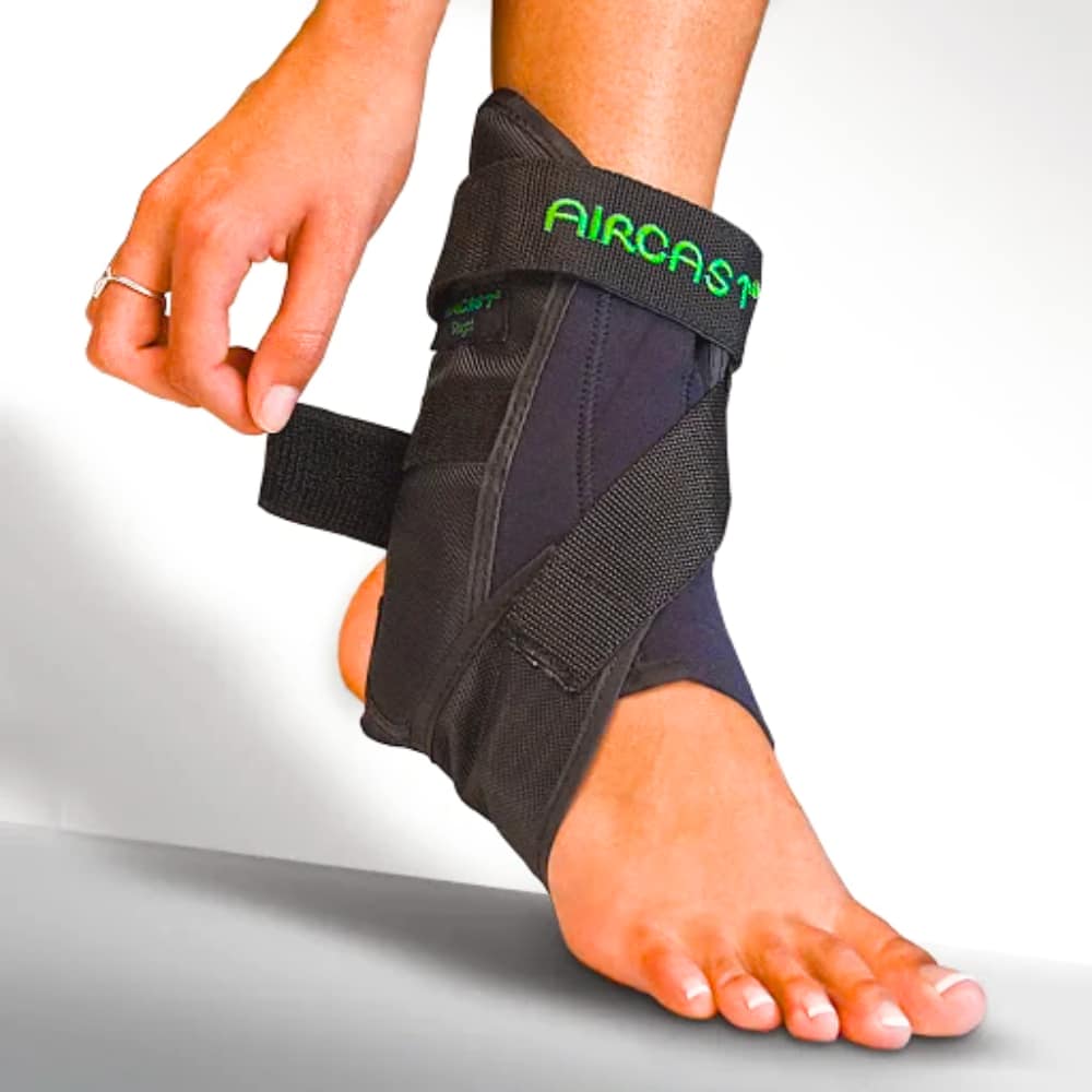 Indication:Ankle sprainChronic instabilityFeatures:Prophylaxis Unique “step-in” design (toes first inserted into the back of the brace) and automatic heel adjustment make the AirSport™ extremely fast and easy to put on.Foam-filled aircell that cushions and supports the ankleSemi-rigid encased shell offers proven Air-Stirrup®supportCoated fabric for durabilityAnterior talofibular cross strap for ankle stabilizationIntegral forefoot and shin wraps for supportAutomatic heel width adjustment for easy applicationSizing Chart