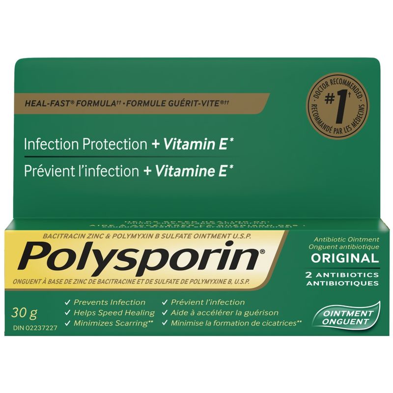 This antibiotic ointment helps to speed up the healing process of minor cuts, scrapes, and burns. Its advanced formula combines two antibiotics to prevent infection and promote faster healing, keeping the affected area clean and protected.