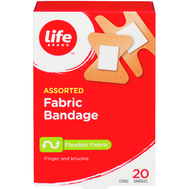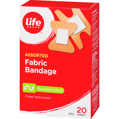 Box of 20 flexible cloth bandages. Ideal for covering small cuts and wounds in areas such as fingers and knuckles. They provide comfortable and flexible coverage.