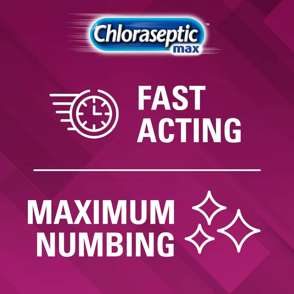 Chloraseptic® Max Sore Throat Lozenges with Soothing Liquid Center in Wild Berries flavor are designed to provide maximum strength relief from sore throat and mouth pain. Each lozenge contains a soothing liquid center that not only alleviates throat discomfort but also cools nasal passages. The active ingredients include Benzocaine (15 mg) and Menthol (10 mg), which act as oral anesthetics and analgesics to temporarily relieve minor irritation, pain, sore mouth, and sore throat. These lozenges are suitable for adults and children aged 6 and over, with the recommended usage being one lozenge every two hours as needed. They are available in a 15-count package.