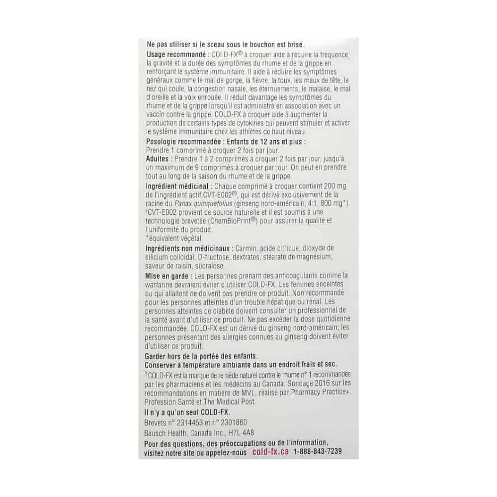 COLD-FX® Daily Support Chewable Tablets in Grape flavor are designed to help reduce the frequency, severity, and duration of cold and flu symptoms by boosting the immune system. Each chewable tablet contains 200 mg of the active ingredient CVT-E002®, a proprietary extract derived from North American ginseng (Panax quinquefolius). This formulation offers the same benefits as COLD-FX® Daily Support capsules but in a convenient, naturally flavored chewable format.