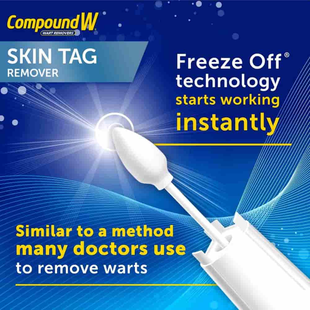 The Compound W Skin Tag Remover is an over-the-counter treatment designed to effectively remove skin tags. This system uses freezing technology similar to cryotherapy, allowing for the removal of skin tags in the comfort of your own home. The package includes 8 applications, suitable for multiple treatments.