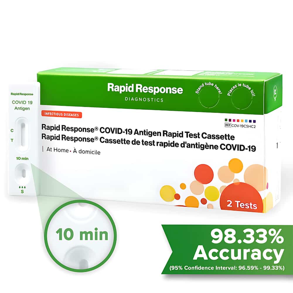 The BTNX Rapid Response® COVID-19 Antigen Rapid Test Device - At Home is an antigen test designed for the rapid, qualitative detection of SARS-CoV-2 in nasal specimens. It is authorized for home use under Health Canada's Interim Order.