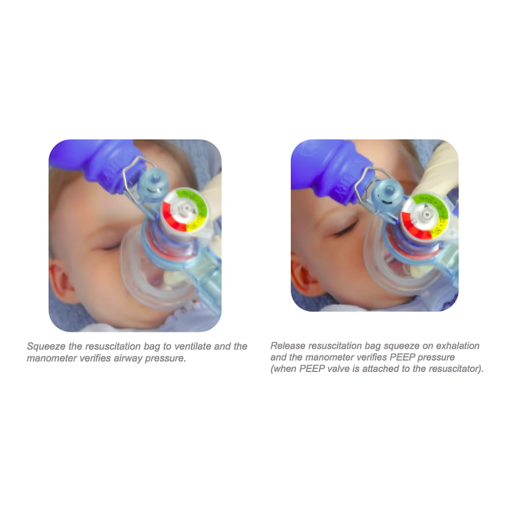 Disposable Pressure ManometerThe Mercury Medical Disposable Pressure Manometer is the first disposable manometer to reliably monitor BOTH proper inflation pressure and PEEP pressure during manual ventilation. And now the Mercury Medical Disposable Pressure Manometer is available with a color-coded label for improved visibility of pressure ranges.