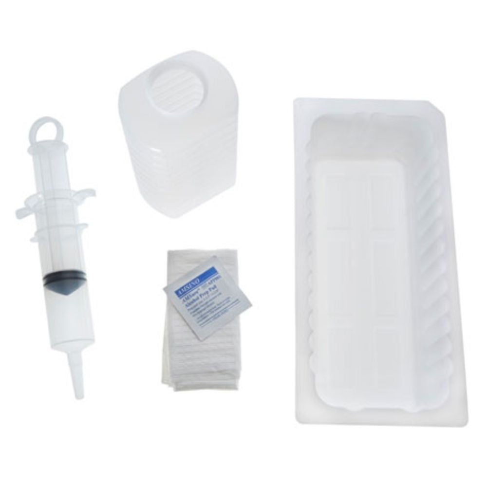 AMSure® Irrigation Tray is designed to improve simplicity and efficiency of care. The sterile tray includes a 500 mL graduated container, 1000 mL tray, alcohol prep pad, moisture-proof pad with a 60 mL thumb control ring syringe. Thumb Control Ring Syringe Thumb control ring top allows for maximum control and one handed administration Precision crafted O-ring plunger ensures a positive seal Re-sealable pole bag designed for safe and convenient storage Patient Label provides convenient patient documentation Sterile, Latex Free, DEHP Free, and BPA free Includes syringe tip adapter and protector cap