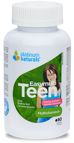 Platinum Naturals: Easymulti® Teen for Young Women. Easymulti Teen for Young Women provides the nutrients that teenage girls need for overall health, clear skin, strong teeth and bones, better eyesight, as well as improved mood and energy. Provides essential nutrients for brain power and healthy vision Supports healthy skin Supports strong bones and teeth during this rapid growth period Improves mood and energy Superior Nutrient Absorption™