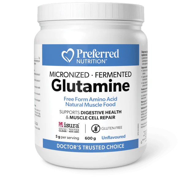 Preferred Nutrition: Micronized Fermented Glutamine. Preferred Nutrition Micronized Fermented Glutamine powder assists in muscle tissue repair and supports digestive and immune system health after prolonged exhaustive exercise. In its micronized form, L-glutamine is easier for the body to break down and absorb, helping restore glutamine levels depleted after periods of physical stress. It has no taste and mixes easily into water. Assists in muscle cell repair after exercise Supports immune system health after periods of physical stress Promotes digestive system health after periods of physical stress Helps restore blood glutamine levels depleted after periods of physical stress Uses micronization technology for easy absorption