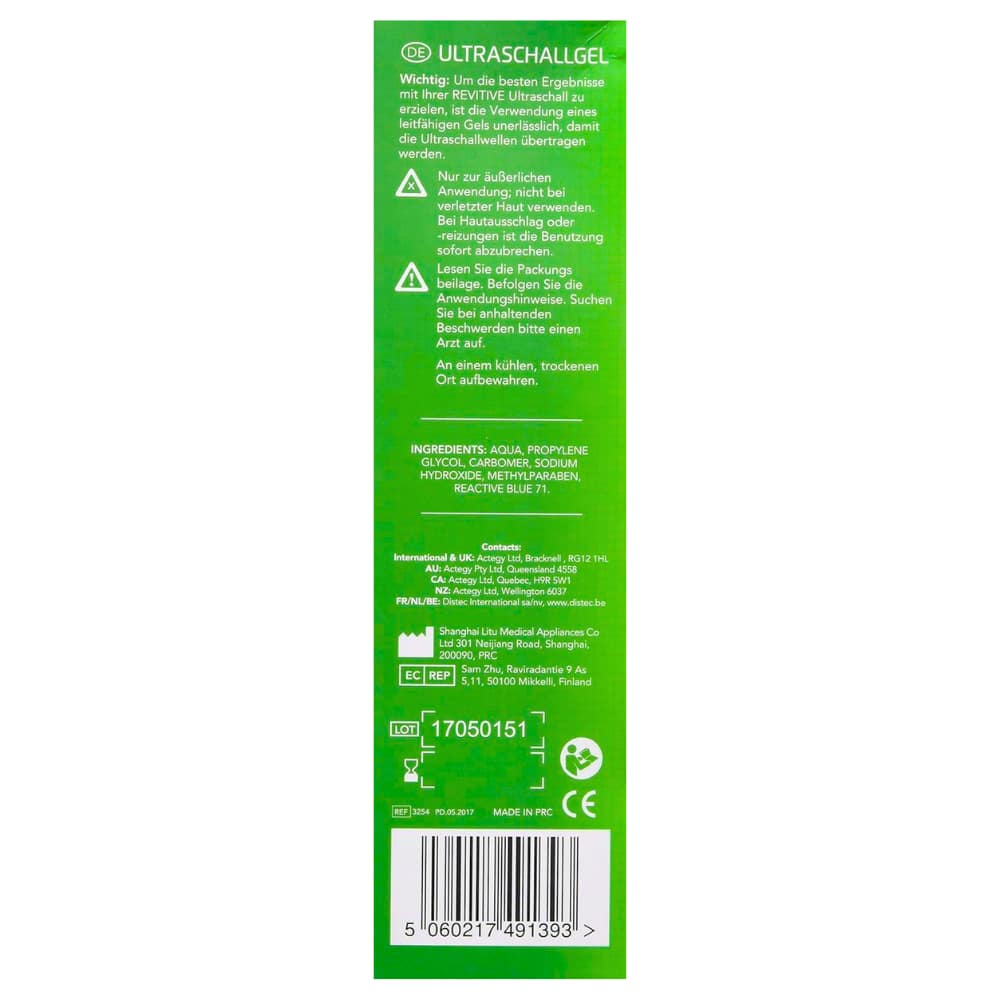 Revitive Ultrasound Gel – 250 ml is a conductive gel specifically formulated for use with the Revitive ultrasound device. Its primary purpose is to facilitate the efficient transmission of ultrasound waves from the device to the tissues, ensuring effective delivery.