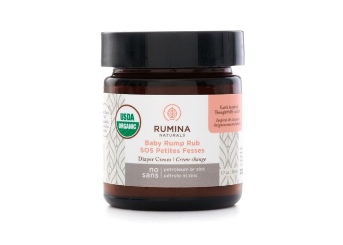 Rumina Naturals: Baby Rump Rub Diaper Cream. Naturally soothes and calms the angriest of bums. Fast and effective. Baby Rump Rub is an all-natural, organic ointment for irritated skin rashes. First aid for a sore bum! Features Reduces the duration and severity of diaper rash when applied at the first sign of inflammation. Provides an immediate protective barrier to nourish skin and prevent redness and irritation.