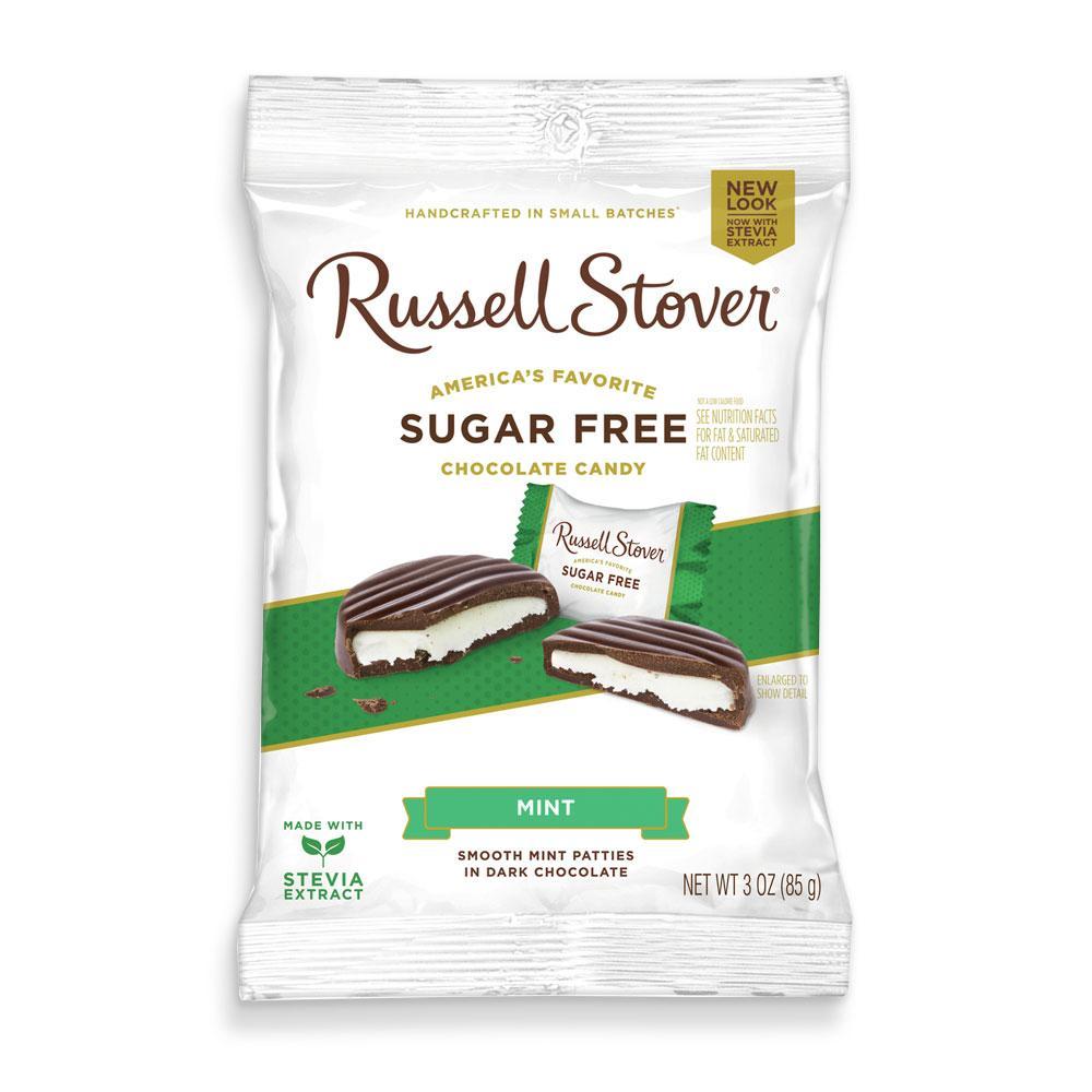 Russell Stover: Sugar Free Mint Patties, 3 oz. Bag. This 3-ounce bag of sugar-free mint patties is the perfect Stevia-sweetened treat for an evening snack. These individually wrapped, refreshing, and healthy chocolates make the perfect guilt-free treat. The smooth mint cream is drenched in rich dark chocolate for a delightful contrast of flavors that's ideal for health-conscious chocolate lovers everywhere. The right amount of sugar-free candy is delicious, but too much may result in adverse digestive effects for those with sensitivity to sugar substitutes