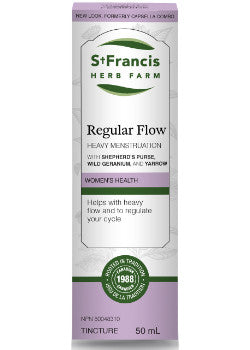 St. Francis: Regular Flow. Our Regular Flow is a tincture formula that helps relieve menorrhagia (i.e. heavy menstruation). With shepherd’s purse, a remarkable anti-hemorrhagic, coagulant herb that has been used for millennia Wild geranium ingredient is also an effective anti-hemorrhagic and astringent herb Achilletin and achilleine, two components of yarrow, spur coagulation Includes chastetree, a hormone-balancing herb that helps menstrual cycle irregularities Who it’s for: Turn to Regular Flow if you’re a woman suffering with heavy menstruation.
