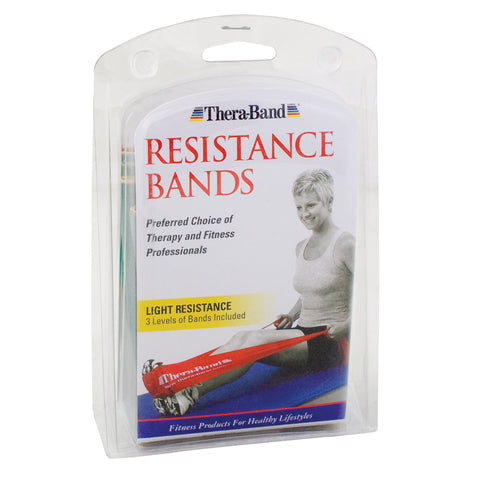TheraBand: Resistance Bands. TheraBand Resistance Band Loops are continuous 3" wide loop elastic bands used for a variety of applications, particularly lower body Exercise to increase strength and balance. The band loops are an effective and efficient way to to strengthen muscles and has the added benefits of convenience, portability, and eliminates the need to tie traditional bands, thus prolonging life and reducing additional wear. The band loops come in four resistance levels, including yellow, red, green, and blue and are available in three lay flat lengths of 8", 12" and 18". 3 inch wide continuous loop elastic bands are an effective way to improve strength & flexibility in glutes, knees and hips The continuous loop provides a comfortable alternative to tying flat resistance bands into loops, helping eliminate wear and tear Convenient and portable product that can be used in the clinic, at-home, or on-the-go