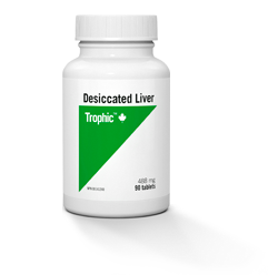 Trophic: Desiccated Liver. Our Desiccated Liver is a synergistic formulation of cow’s liver, bromelain and citrus bioflavonoids. Our desiccated (dehydrated) liver is prepared using the lowest possible heat to retain maximum nutrient content. Desiccated liver tablets are an excellent dietary supplement for children and athletes. Rich in vitamins A and B and minerals such as iron, zinc as well as protein. Evidence indicates that liver contains a number of unidentified growth factors. Citrus bioflavonoids are valuable in the prevention of physical stress and capillary damage. This is especially beneficial to bodybuilders and athletes. The presence of bromelain, a potent enzyme from pineapple, ensures complete digestion. Free-Range, Grass-Fed bovine from Argentina Raised without Hormones, Pesticides or Other Chemical Substances EACH TABLET CONTAINS Medicinal Ingredients: Desiccated Liver (bovine liver) ……………… 488 mg Citrus Bioflavonoids (Citrus Limonum) …….. 10 mg Bromelain (Ananas Cosmosus) …………. 10 mg Vitamin B12 (Cyanocobalamin) …………. 1 mcg Non-Medicinal Ingredients: Microcrystalline cellulose, magnesium stearate. Directions: Adults, take 4 tablets daily or as recommended by a healthcare practitioner. Recommended Use: For the maintenance of good health. No added yeast, wheat, corn, soy, gluten, sugar, dairy, artificial colors or preservatives.