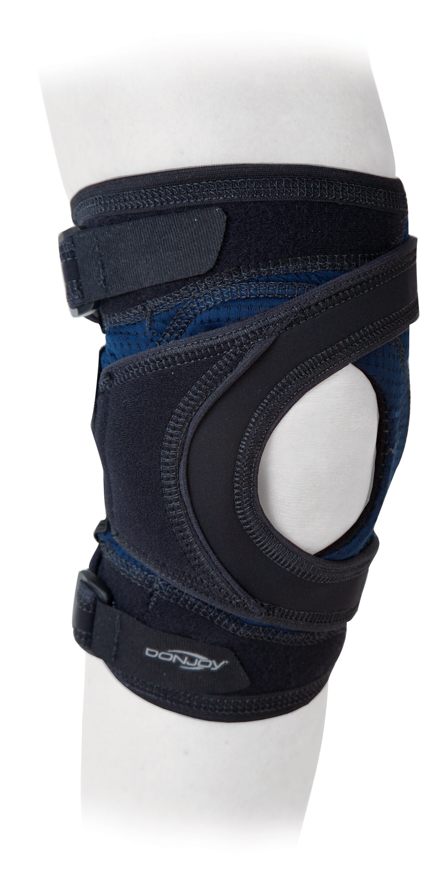 Bifurcated strap dynamically pulls the patella into proper alignment reducing pain associated with patellofemoral dysfunctionDual durometer buttress system interfaces directly with the patella applying a consistent corrective force to reduce painIndependent anchors at the thigh and calf prevent rotation of the braceNew anti-microbial, wicking fabric is hypoallergenic, breathable, and light weight—thereby increases patient comfort and complianceSet of removable plastic hinges included with every brace to provide medial and lateral stabilitySizing Chart