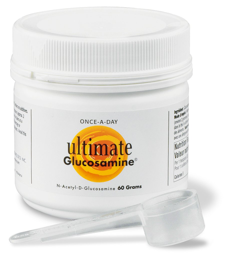 Ultimate Glucosamine. The once-a-day sweet tasting powder that aids in joint repair and lubrication. Contains only 100% pure N-acetylglucosamine. This unique formulation contains no additives, salts, preservatives, artificial sweeteners, coloring agents, gluten, lactose or yeast.