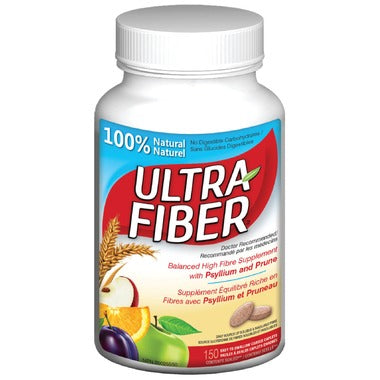 Ultra-Fiber: Ultra Fiber | 150 Caplets. Ultra-Fiber can be used as a dietary supplement; swallow 2-4 ULTRA-FIBER Caplets with a full glass of water before or with meals (3 times daily) Swallow whole. Do not crush or chew. ULTRA-FIBER Caplets contain a uniquely balanced and optimal ratio of soluble and insoluble fibers found in various fibrous plant materials, including natural grains, vegetables and fruits. By supplementing your food intake with ULTRA-FIBER caplets, you can significantly increase your daily fiber intake. Active Ingredients: Dietary Fiber (As microcrystalline cellulose from plant sources, oat bran fiber, natural chicory fiber, appl fiber, psyllium powder and prune powder) Other Ingredients: Vegetable stearine, pharmaceutical glaze, caramel, carmine.