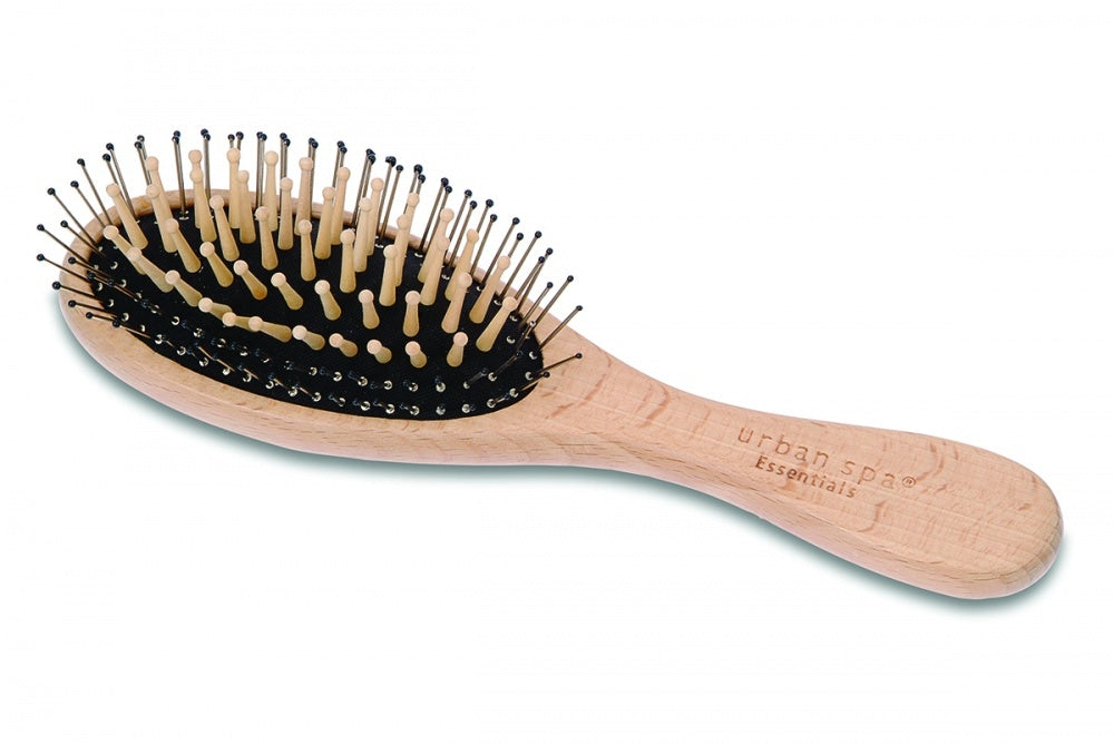 Urban Spa: Smooth As Silk Hair Brush. Wooden pegs and capped bristles glide through locks, distributing natural hair oils and styling products to those hard-to-reach ends.