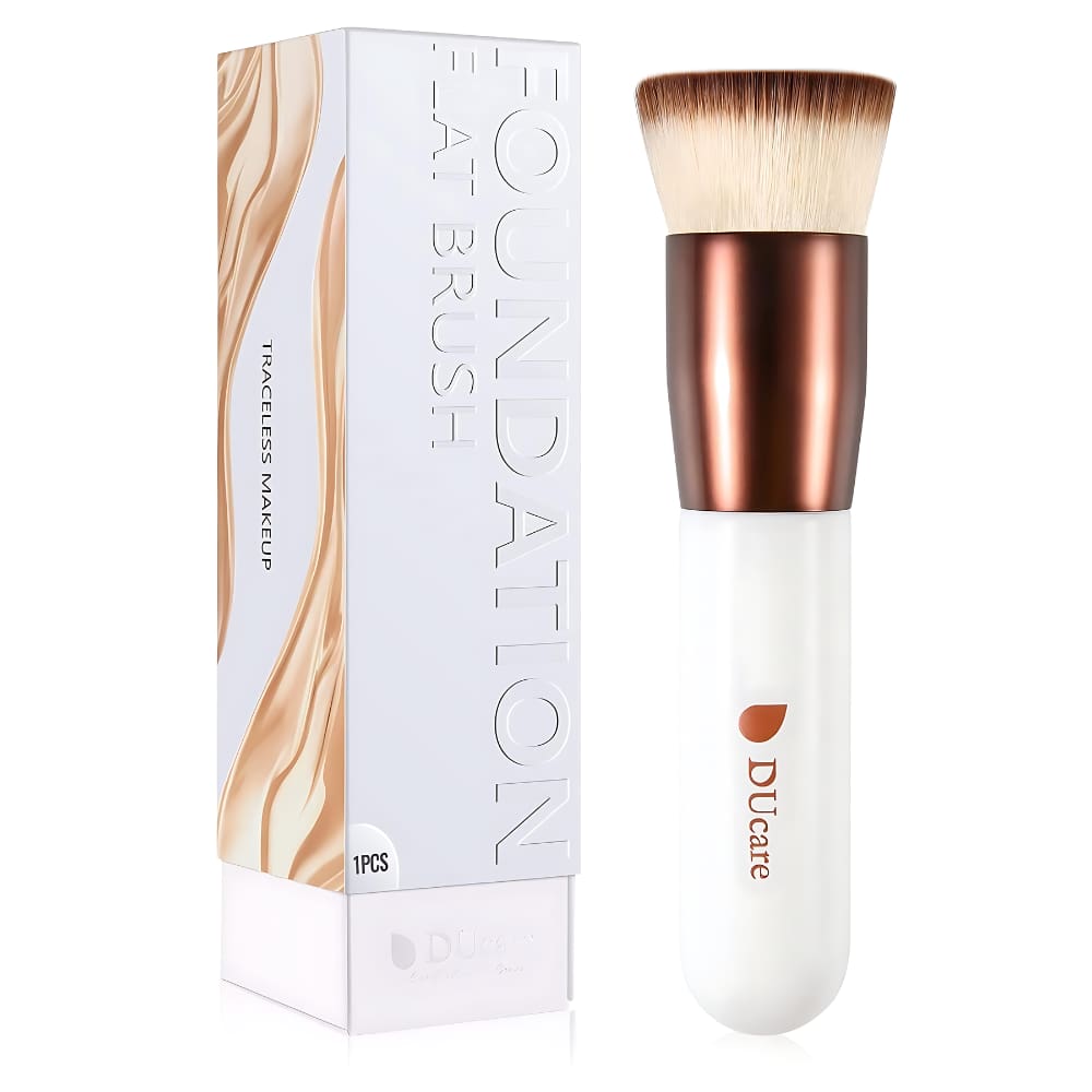 The DUcare Foundation Brush Flat Top Kabuki Brush is a professional-grade makeup tool designed for seamless application of liquid, cream, and powder foundations. Its dense, firm, and soft synthetic bristles ensure a smooth and even finish, effectively blending products without absorbing excess. The flat top design allows for precise application, making it ideal for buffing, stippling, and achieving a flawless complexion. The ergonomic handle provides a comfortable grip, enhancing control during use. This brush is suitable for both makeup enthusiasts and professionals seeking high-quality tools for their makeup routines.