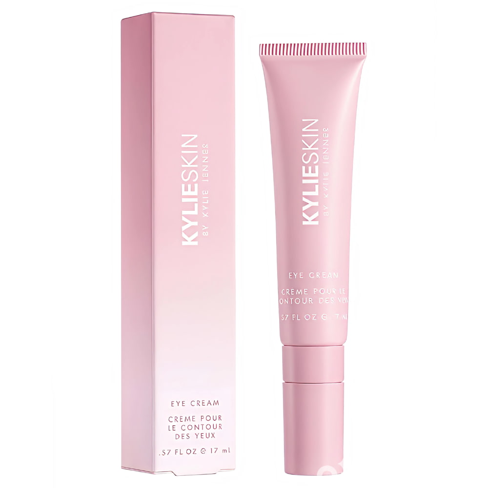 The Kylie Skin Eye Cream is an eye contour care cream formulated with ingredients such as caffeine, green tea and pomegranate extracts, vitamins C and E, shea butter, and jojoba seed oil. These components work together to provide hydration and improve the overall appearance of the skin in this area. It is recommended to apply daily, in the morning and at night, using the angled applicator to gently massage around the entire eye contour.