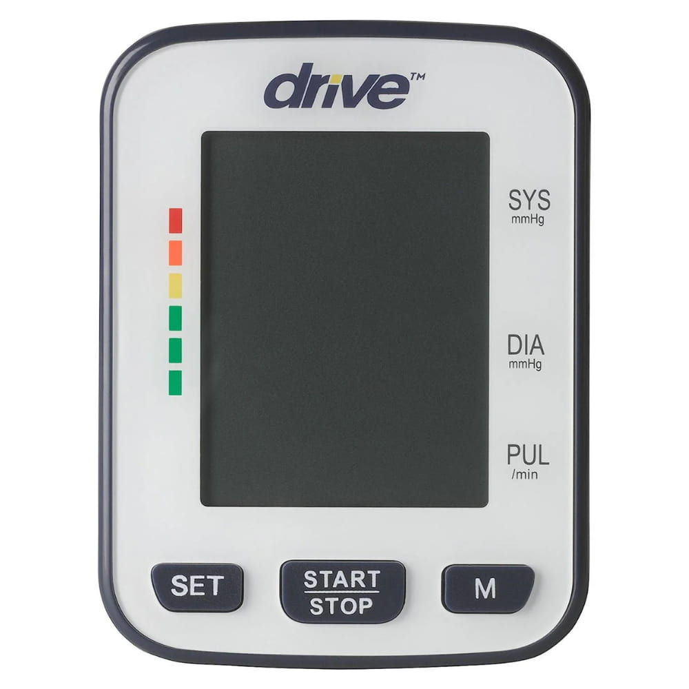 The "Deluxe Automatic Blood Pressure Monitor, Wrist" by Drive Medical is a digital blood pressure monitor designed to measure blood pressure at the wrist accurately and conveniently. This device features a large, easy-to-read LCD screen that clearly displays systolic and diastolic pressure readings, as well as pulse rate. It offers one-touch operation, making it user-friendly for individuals of all ages. Advanced functions include irregular heartbeat detection and classification according to World Health Organization (WHO) standards, providing additional context to the readings. Its internal memory stores up to 120 readings, allowing for tracking blood pressure trends over time. The monitor is compact and lightweight, and includes a travel bag for easy portability, making it an ideal tool for health monitoring at home or on the go.
