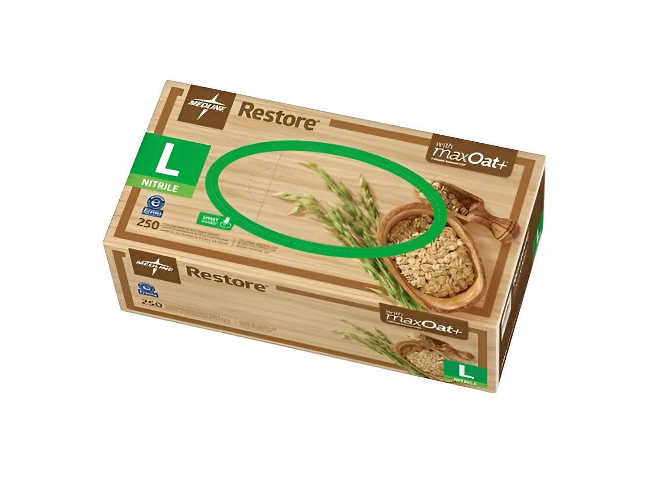 Restore exam gloves soothe and protect hands at the same time. Restore is coated on the inside with maxOat+ colloidal oatmeal - recognized by dermatologists for helping soothe irritated skin. Recommended by nurses, Restore helps soften and hydrate dry, irritated hands while you wear them. These medical grade, single-use gloves are perfect for a variety of uses, from patient care and first aid to food prep, baby care, cleaning, gardening, pet care, hair care and much more. Made of durable nitrile material, Restore is powder-free and not made with natural rubber latex to help minimize allergic reactions and irritating sensitive hands. *When used in accordance to the guidelines set forth in the USP 800 chapter. Tested chemotherapy drugs available upon request. Do not use with Carmustine and Thiotepa.