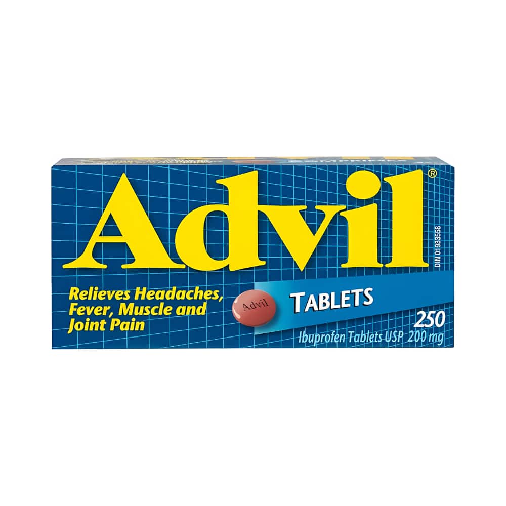 Advil Ibuprofen Tablets are formulated to provide effective relief from various types of pain, including headaches, muscle aches, backaches, toothaches, menstrual cramps, minor arthritis pain, and aches associated with the common cold. Each tablet contains 200 mg of ibuprofen, a nonsteroidal anti-inflammatory drug (NSAID) that works by reducing inflammation and alleviating pain. The tablets are coated for easy swallowing and are suitable for adults and children over 12 years of age. This package contains 250 tablets, making it convenient for long-term use or for households with multiple users. For optimal results, follow the dosing instructions on the label or as directed by a healthcare professional.