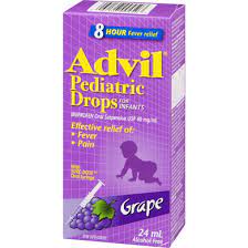 Advil Pediatric Drops relieve fevers for up to 8 hours, so your baby can rest peacefully. They come with a SURE-DOSE™ oral syringe for precise and easy dosing. For ages 4 months to 3 years. For children under 3 months of age consult your physician.REDUCES FEVER AND RELIEVES PAIN DUE TO:immunizationearachecoldssore throat