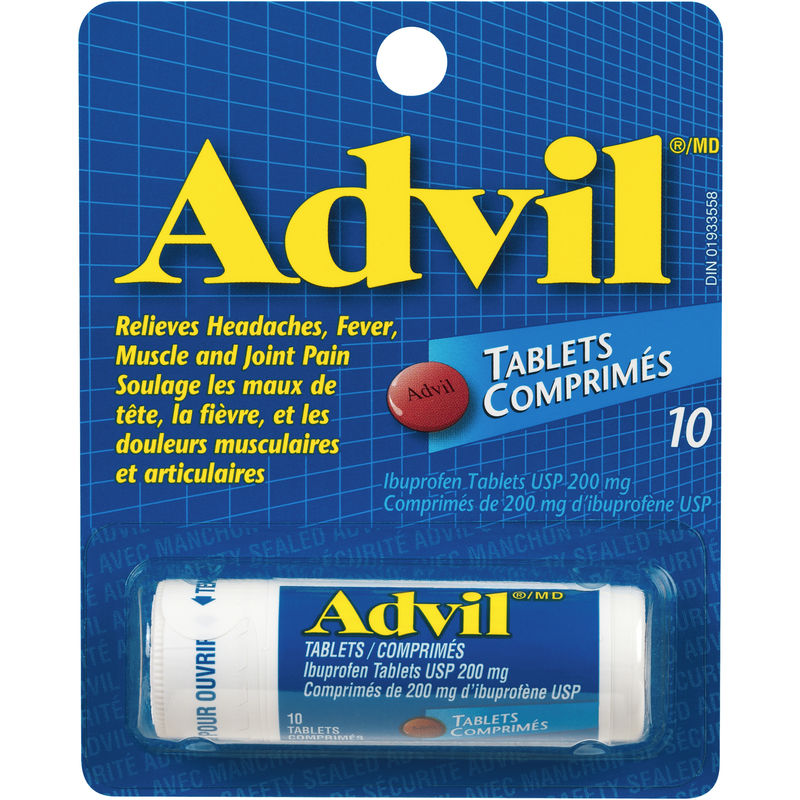 Advil Regular Strength Ibuprofen Tablets provide fast-acting and reliable relief from headaches, muscle aches, back pain, and other minor pains. Each tablet contains 200 mg of ibuprofen, a trusted pain reliever and anti-inflammatory agent. The compact 10-count pack is perfect for travel, work, or keeping on hand for quick relief whenever you need it.
