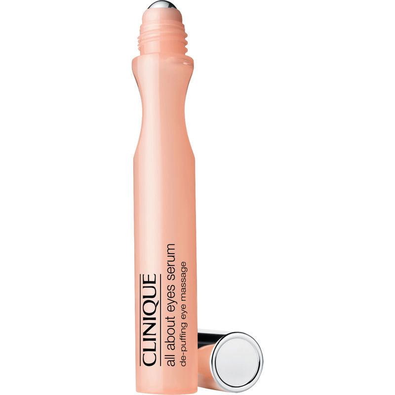 Clinique All About Eyes Serum De-Puffing Eye Massage is a refreshing, lightweight serum that helps to instantly de-puff and brighten the eye area. Infused with a cooling rollerball applicator, it gently massages the delicate skin around the eyes, providing soothing relief while targeting puffiness and dark circles. This quick-absorbing formula is designed to hydrate, refresh, and revitalize tired eyes, making it ideal for on-the-go use. Dermatologist-tested and suitable for all skin types, it helps promote a more rested and youthful look.