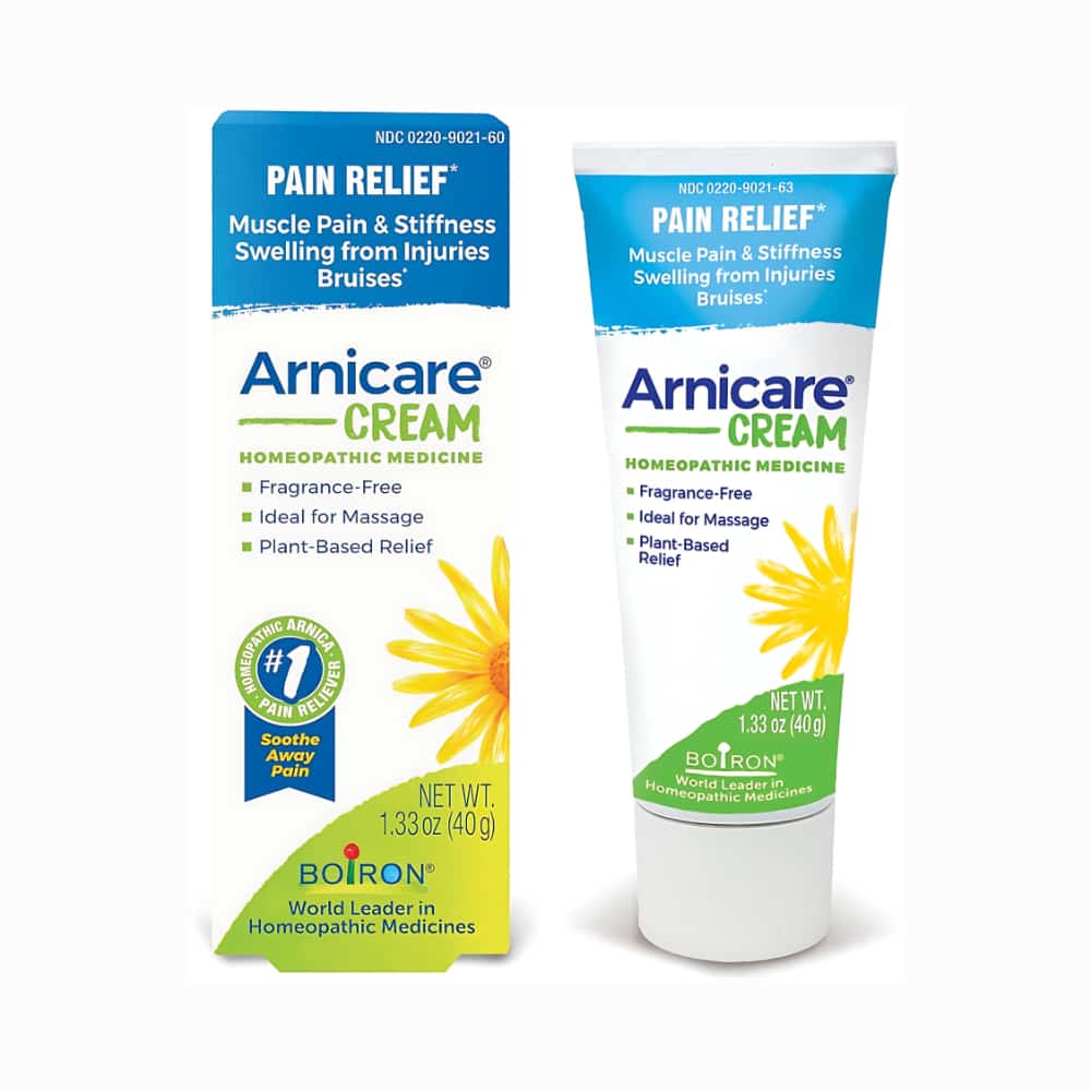 Arnicare Cream is a homeopathic topical remedy formulated to alleviate muscle pain, stiffness, and reduce swelling and discoloration from bruises. Its moisturizing, fragrance-free formula is ideal for massaging sore muscles and painful joints, such as wrists, shoulders, knees, and backs. The cream is paraben-free and suitable for sensitive skin.