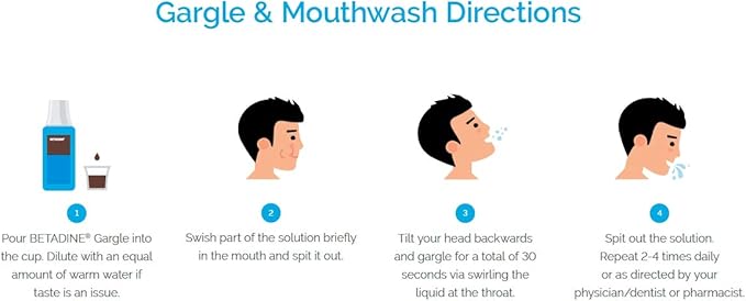 Betadine® Sore Throat Gargle (240 mL) is a throat rinse that helps relieve irritation and pain caused by minor throat infections, such as pharyngitis. With its antiseptic povidone-iodine (Betadine) formula, it fights bacteria, viruses and fungi, providing fast and effective relief for cold symptoms or throat infections.