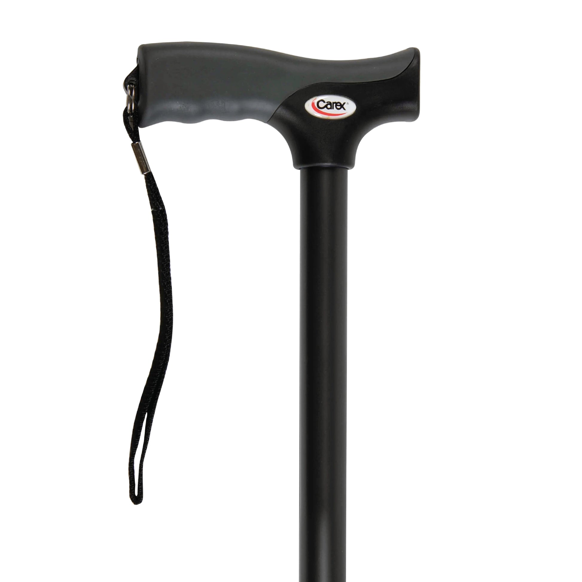 The CAREX Soft Grip Derby Cane - Black is engineered for exceptional comfort and durability. Its ergonomic, latex-free handle is designed to reduce wrist strain and hand fatigue, offering a soft yet firm grip. Constructed from lightweight aluminum, the cane supports up to 250 lbs and features an anti-slip ¾" rubber tip for enhanced traction. The height is easily adjustable from 31" to 40" with a simple push-button mechanism, accommodating users from 5'2" to 6'4". A convenient wrist strap prevents accidental drops, making it suitable for both left- and right-handed users.