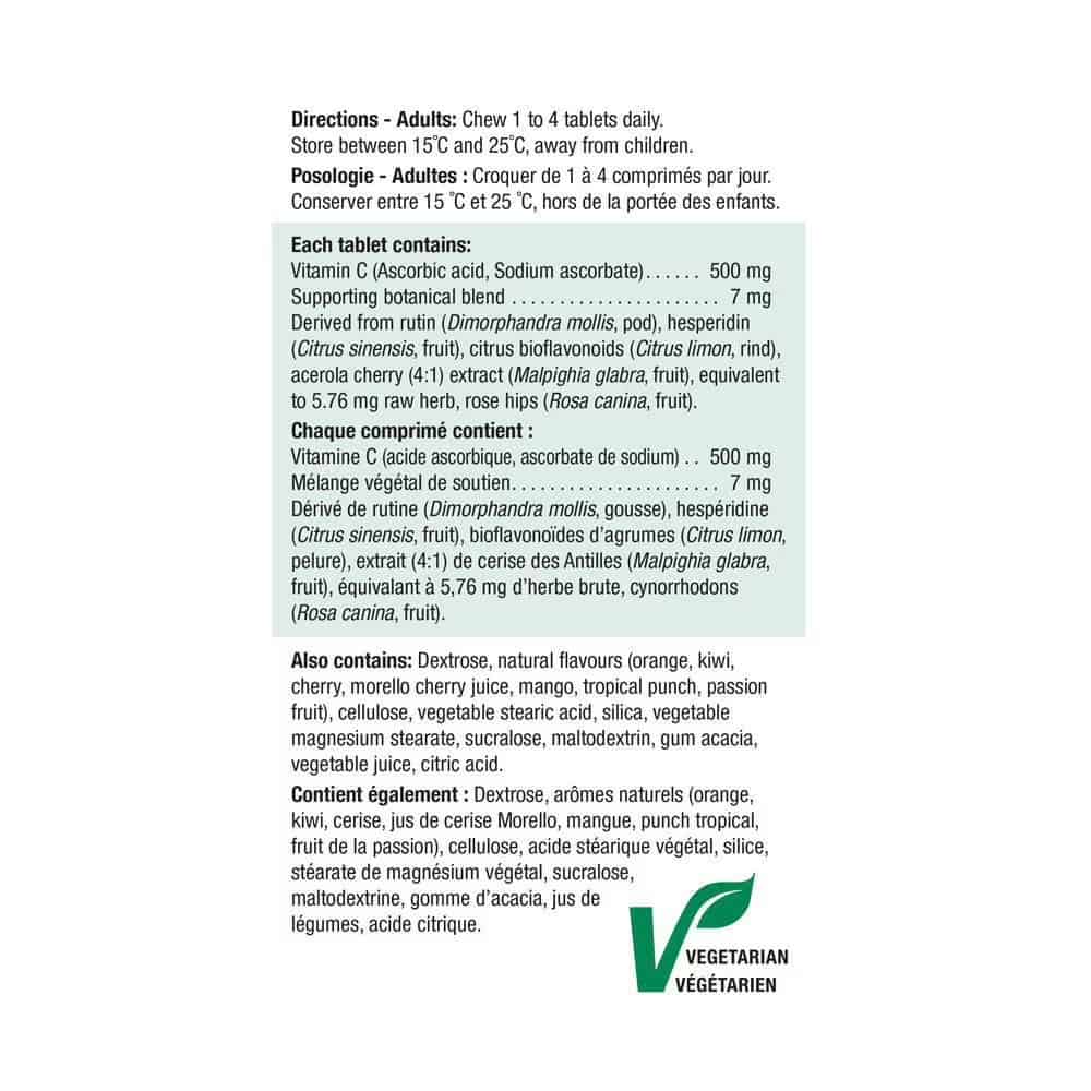 The 500 mg mixed-flavor chewable vitamin C tablets are vitamin supplements designed to provide a significant dose of vitamin C in a chewable form with a pleasant taste. Vitamin C is essential for the proper functioning of the immune system, protection against cellular damage, and iron absorption. These tablets often offer a combination of fruit flavors, such as orange, strawberry, and lemon, to make intake more enjoyable. For example, the Jamieson brand offers 500 mg chewable vitamin C tablets in three fruit flavors, with no artificial colors or flavors, making them a natural and convenient option for those who prefer not to swallow pills. It is recommended to follow the product instructions and consult a healthcare professional if symptoms persist or worsen. Additionally, maintaining a balanced diet and a healthy lifestyle can complement the benefits of vitamin C.