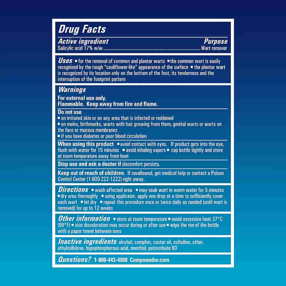 Compound W Wart Remover Maximum Strength Liquid is an over-the-counter treatment designed to effectively remove common and plantar warts. It contains 17% salicylic acid, an active ingredient known for its effectiveness in removing warts. This fast-acting liquid penetrates deep into the wart, helping to dissolve and remove the affected tissue. The packaging includes a precision applicator that makes it easy to apply directly to the wart, minimizing contact with the surrounding skin. It is suitable for adults and children ages 3 and up.