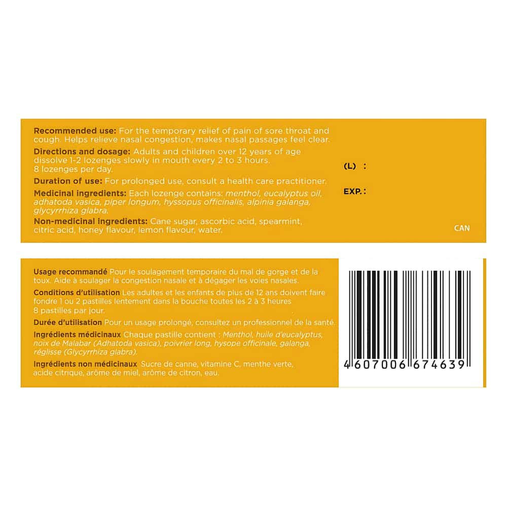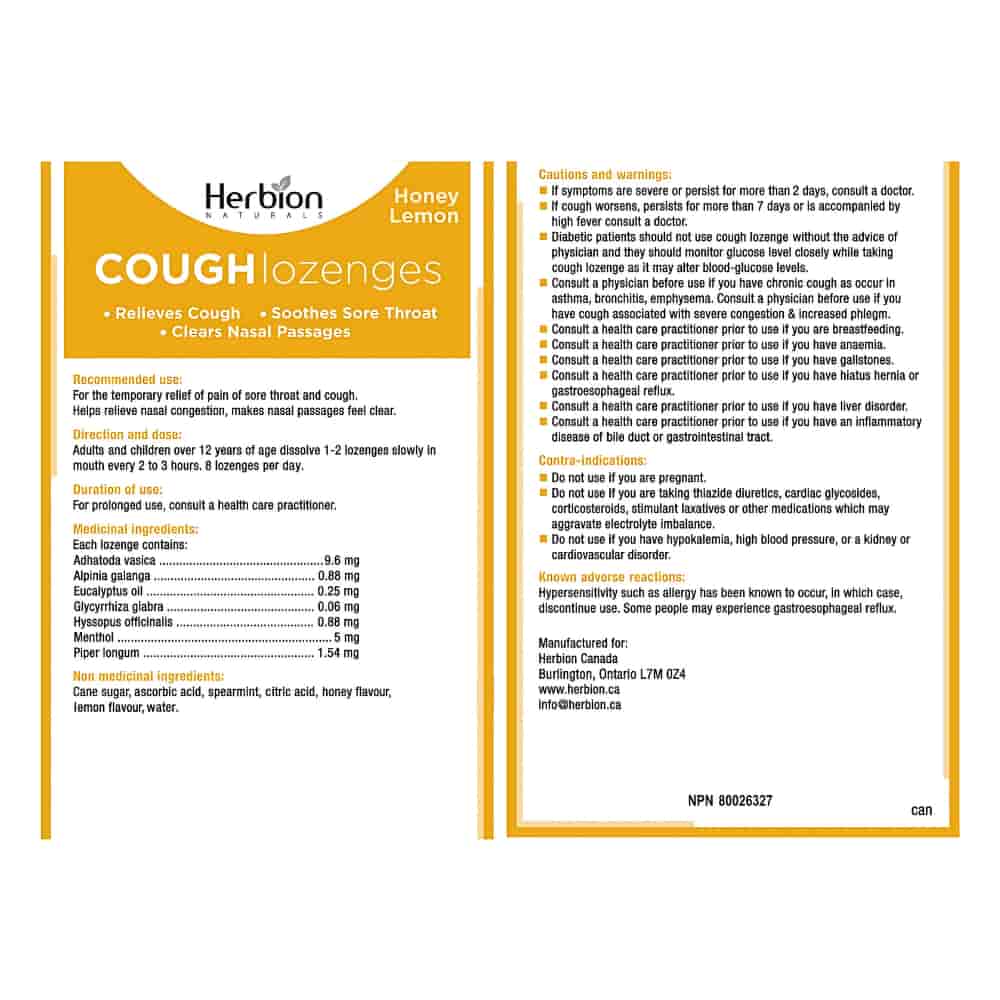 Herbion Naturals Cough Drops in honey lemon flavor are lozenges formulated to relieve cough and soothe sore throat. Each pack contains 18 lozenges that combine a blend of natural herbs and menthol, providing effective relief from cough associated with hoarseness, dry throat, and minor irritations caused by the common cold.