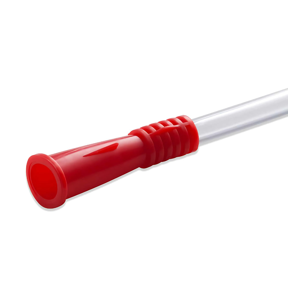 The Cure Medical female intermittent catheter is a sterile, single-use device designed for intermittent catheterization in women. Measuring 6 inches (15 cm) in length, it features polished drainage eyelets that facilitate more comfortable insertion and removal. This catheter is uncoated, allowing users to apply their preferred sterile lubricant as needed. It is manufactured without the use of DEHP, BPA, or natural rubber latex, reducing the risk of allergic reactions and exposure to potentially harmful chemicals. The packaging includes a unique dual opening that facilitates use and can serve as a no-touch insertion sleeve, enhancing hygiene during the procedure. It is available in French sizes ranging from 8 FR to 18 FR to accommodate the individual needs of each patient.