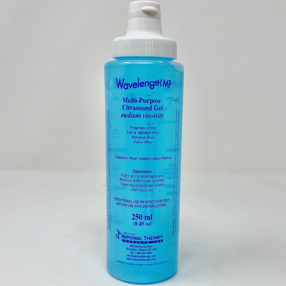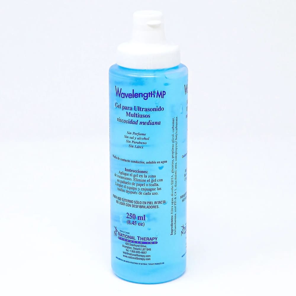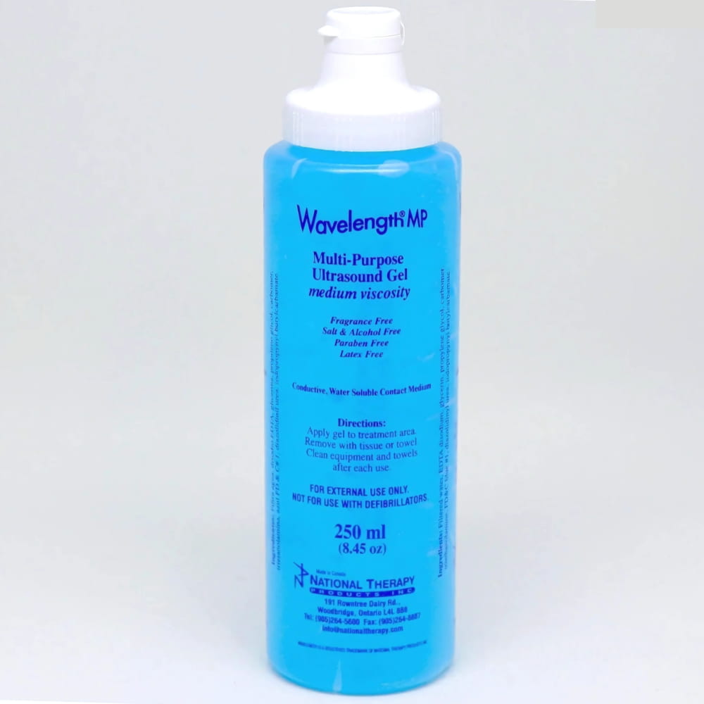 Wavelength MP Multi-PurposeUltrasound GelDoes not contain salt, alcohol, fragrances, or parabenWater solubleMedium viscosityBlue
