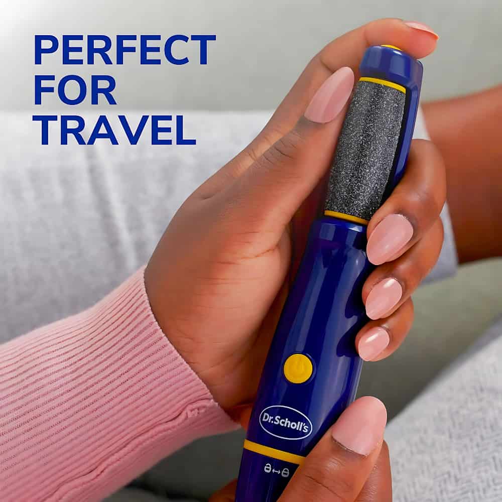 Dr. Scholl's Callus Remover - 00399 is an electronic device designed to quickly and effectively remove calluses and hardened skin from the feet. Equipped with a rotating head, this device glides smoothly over the affected areas, removing rough skin effortlessly. Its wireless design makes it easy to use and maneuver, allowing you to reach all areas of the foot comfortably. For best results, it is recommended to use the device on clean, dry skin, applying light pressure and moving it in circular motions over the callus until the skin becomes soft. After use, it is advisable to apply a moisturizing cream to maintain the softness of the skin.