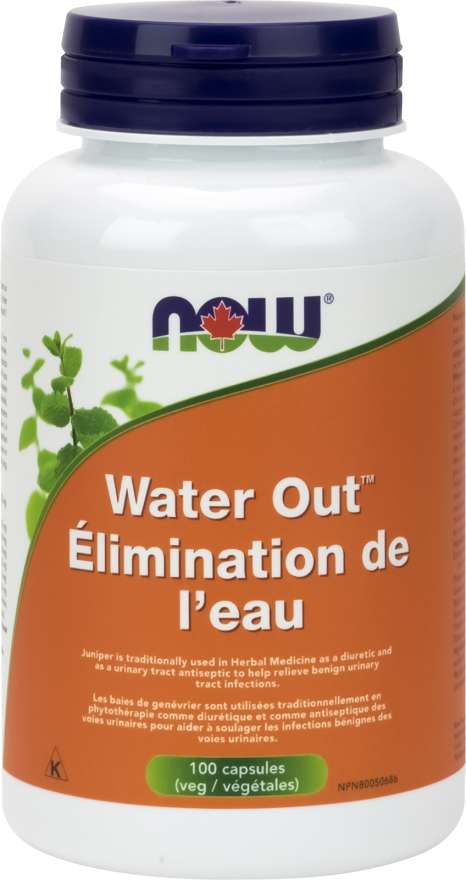 NOW: Water Out Veg Capsules. PRODUCT DESCRIPTION Juniper is traditionally used in Herbal Medicine as a diuretic and as a urinary tract antiseptic to help relieve benign urinary tract infections With Juniper, Uva Ursi, Dandelion, Uniquely features Potassium and Vitamin B-6 Vegetarian / Vegan NOW® Water Out™ is a blend of complementary herbs and nutrients formulated to support healthy urinary tract function and proper bodily fluid balance. Water Out™ features Dandelion, which has been traditionally used to support the maintenance of water equilibrium, as well as Uva Ursi and Juniper, which have been used historically by herbalists to support a healthy urinary tract. In combination with the nutritional components Vitamin B-6 and Potassium, Water Out™ represents a unique and natural way to support proper urinary tract function. Potassium levels may drop when using a diuretic, so it is important to maintains these levels during use. NPN 80079531 Directions: Adult Dosage: Take 3 capsules 2 times daily. Take with food or immediately after a meal, a few hours before or after taking other medications or health products. Do not take with highly acidic foods (e.g. citrus fruits and juice) or medications which may acidify urine. For occasional use only. For use beyond 1 week, consult a health care practitioner. Each capsule contains: Uva Ursi Extract (Arctostaphylos uva-ursi) (Leaf) 125 mg (Standardized to contain 15% Arbutin) Dandelion (Taraxacum officinale) (Leaf) 100 mg Juniper (Juniperus communis) (Berry) 60 mg Buchu (Agathosma betulina) (Leaf) 60 mg Vitamin B6 (from Pyridoxine Hydrochloride) 12.5 mg Potassium (from Potassium Chloride) 49.5 mg Non-Medicinal Ingredients: Veg Capsule (hypromellose, water), Rice Flour, Stearic Acid (vegetable source), Magnesium Stearate (vegetable source).