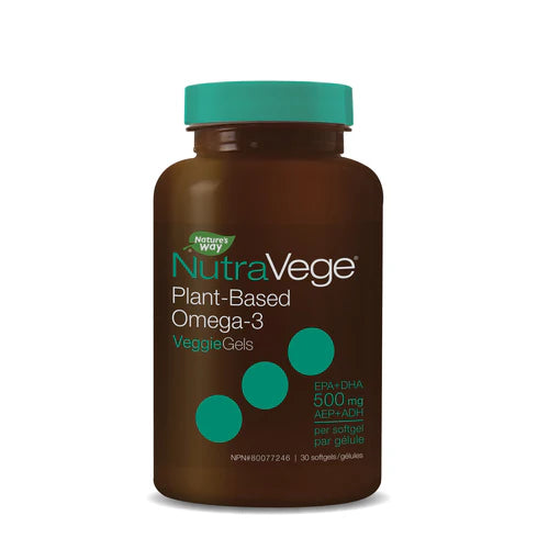 NutraVege: Plant-Based Omega-3 Veggie Gels. NutraVege is a pure and effective plant-based omega-3 formula. With 150mg EPA + 300mg DHA from algal oil, NutraVege is 100% vegetarian and vegan-friendly. NutraVege helps to support the maintenance of good health as well as eye, brain, and cardiovascular health. Just one softgel per day in a fresh mint flavour.
