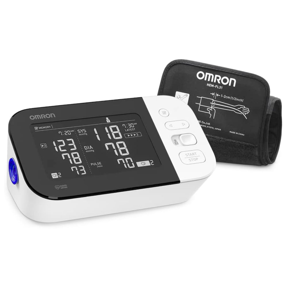 The device includes an Easy-Wrap ComFit cuff that fits arms with circumferences ranging from 9 to 17 inches, ensuring comfortable and accurate measurements. A notable feature is its Bluetooth connectivity, which enables the monitor to sync with the free OMRON Connect app available for iOS and Android devices. This allows for unlimited storage of readings, viewing of graphs, and tracking blood pressure trends over time.