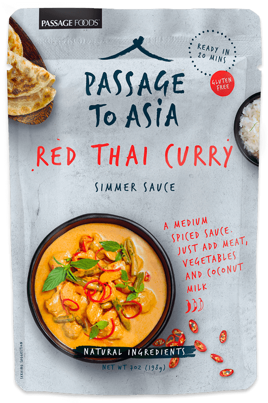 Passage To India: Red Thai Curry. A classic blend of chili and spices, this sauce is one of thailand’s traditional dishes – Rich, spicy and not too hot! Ingredients: Water, Sugar, Red Chili, Fish Sauce (Anchovies), Garlic, Onion, Corn Starch, Distilled Vinegar, Cilantro, Lemongrass, Salt, Spices, Natural Flavors (Contains Coconut), Yeast Extract, Paprika Extract (Color), Citric Acid, Spice Extracts, Xanthan Gum. You may also like