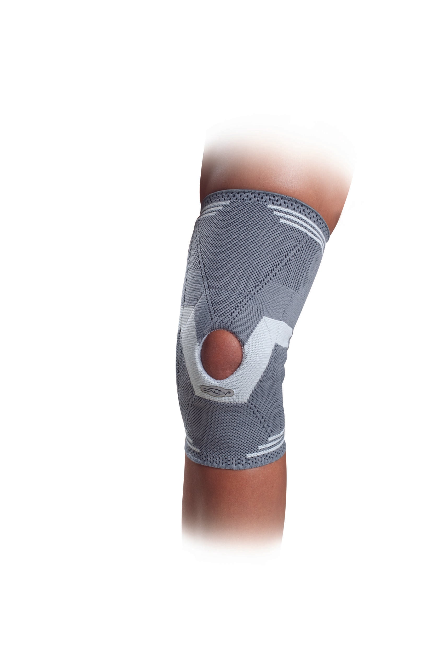 Features:Anatomically knitted.Multi-directional elasticity.Gradient compression. Breathable. Looser popliteal knit.Flexible bilateral stays.Silicone patellar buttress.Sizing Chart
