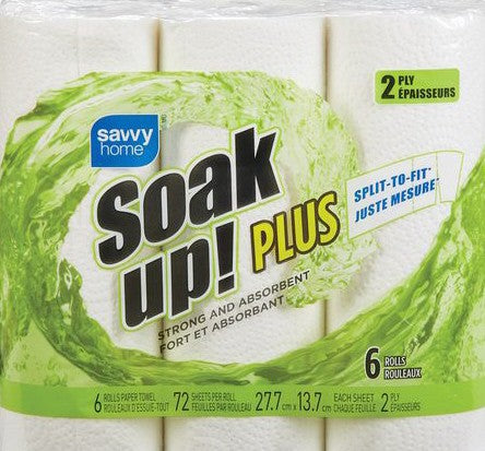 Savvy Home: Paper Towel. Savvy Home Soak Up! 2 ply paper towel. 6 rolls, 72 sheets per roll.