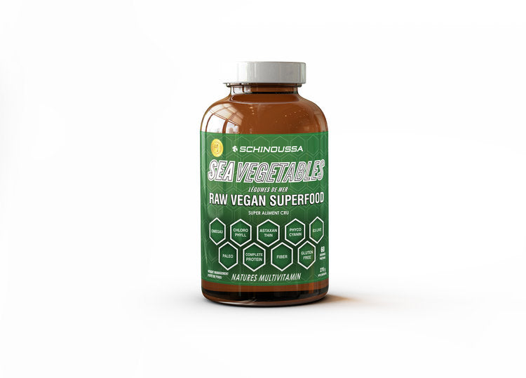 Schinoussa: Sea Vegetables. Sea vegetables are stimulated to life through photosynthesis. Sun energy in the most powerful source of energy, thus, sea vegetables are the word’s most potent food source. Due to their extreme nutrient profile, density and bio availability, sea vegetables are the greatest green super food with no competition in the arena of health benefits. All our formulas are considered to be natures multi-vitamin, mineral and trace mineral with exceptional phytonutrients. Plant based omega 3 and fiber. 1 tsp is equal to 10 servings of fruit and vegetable in nutrient density as the bio availability is 98%. All formulas are alkalizing, pH balancing and detoxifying. The unique differences are referenced in product benefits. Product Benefits Weight loss green label: Added bladderwrack and kelp for more iodine to support thyroid health at metabolism. 270 g Note: Raw, vegan, paleo algae. Non radiated and organic. Product Highlights • Fresh sea vegetables from Canada, USA, Greece • Handed pick and sun dried • Unique formulas for specific health needs • Complete amino acid profile • No taste • Flax in original and weight loss as detox support