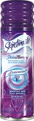 Skintimate: Shaving Gel for Sensitive Skin. SHAVING GEL FOR SENSITIVE SKIN | SKINTIMATE Skintimate® Sensitive Skin Women’s Shave Gel treats your sensitive skin to the protection and moisturization it richly deserves. ABOUT SHAVING GEL FOR SENSITIVE SKIN | SKINTIMATE We’re sensitive to your shaving needs. Skintimate® Sensitive Skin Women’s Shave Gel is formulated for skin just like yours. With aloe, Vitamin E and other conditioners and lubricants, the formula helps moisturize and soften skin while helping to protect against painful nicks and cuts. And wait until you feel that rich lather – your razor will glide, your skin will be pampered, and your shave will be smoother than you ever imagined