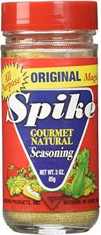 Spike: Gourmet Natural Seasoning. Spike seasoning is a carefully selected balanced blend of the most exciting and flavourful natural ingredients from the four corners of the earth. Spike All Purpose seasoning is a sensational flavour magician that will turn your meals into gourmet delights. Adds great flavour, not calories.